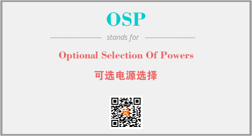 上述内容是“Optional Selection Of Powers”作为“OSP”的缩写,解释为“可选电源选择”时的信息,以及英文缩略词OSP所代表的英文单词,其对应的中文拼音、详细解释以及在英文中的流行度和相关分类、应用领域及应用示例等。