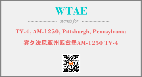 上述内容是“TV-4, AM-1250, Pittsburgh, Pennsylvania”作为“WTAE”的缩写,解释为“宾夕法尼亚州匹兹堡AM-1250 TV-4”时的信息,以及英文缩略词WTAE所代表的英文单词,其对应的中文拼音、详细解释以及在英文中的流行度和相关分类、应用领域及应用示例等。