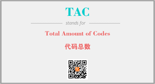 上述内容是“Total Amount of Codes”作为“TAC”的缩写,解释为“代码总数”时的信息,以及英文缩略词TAC所代表的英文单词,其对应的中文拼音、详细解释以及在英文中的流行度和相关分类、应用领域及应用示例等。