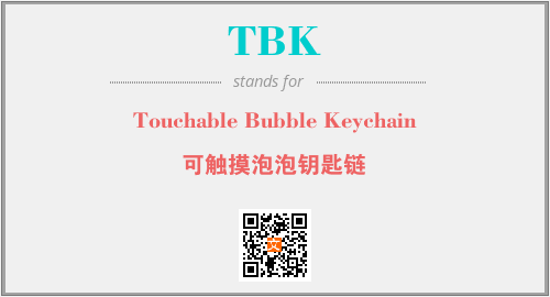 上述内容是“Touchable Bubble Keychain”作为“TBK”的缩写,解释为“可触摸泡泡钥匙链”时的信息,以及英文缩略词TBK所代表的英文单词,其对应的中文拼音、详细解释以及在英文中的流行度和相关分类、应用领域及应用示例等。