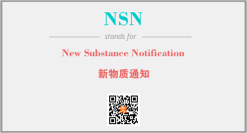 上述内容是“New Substance Notification”作为“NSN”的缩写,解释为“新物质通知”时的信息,以及英文缩略词NSN所代表的英文单词,其对应的中文拼音、详细解释以及在英文中的流行度和相关分类、应用领域及应用示例等。