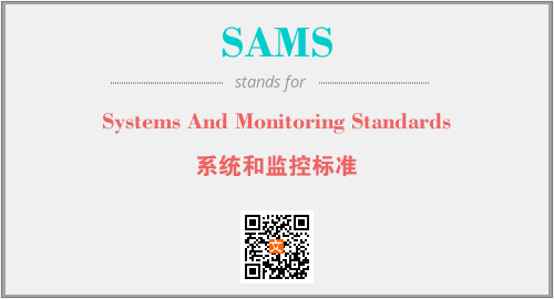 上述内容是“Systems And Monitoring Standards”作为“SAMS”的缩写,解释为“系统和监控标准”时的信息,以及英文缩略词SAMS所代表的英文单词,其对应的中文拼音、详细解释以及在英文中的流行度和相关分类、应用领域及应用示例等。