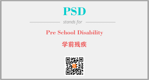 英文缩略词“PSD”经常作为“Pre School Disability”的英文缩写来使用,中文表示:“学前残疾”。本文将详细介绍英文缩写词PSD所代表英文单词,其对应的中文拼音、详细解释以及在英语中的流行度。此外,还有关于缩略词PSD的分类、应用领域及相关应用示例等。