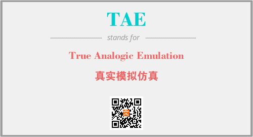 上述内容是“True Analogic Emulation”作为“TAE”的缩写,解释为“真实模拟仿真”时的信息,以及英文缩略词TAE所代表的英文单词,其对应的中文拼音、详细解释以及在英文中的流行度和相关分类、应用领域及应用示例等。
