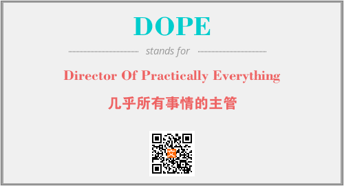 上述内容是“Director Of Practically Everything”作为“DOPE”的缩写,解释为“几乎所有事情的主管”时的信息,以及英文缩略词DOPE所代表的英文单词,其对应的中文拼音、详细解释以及在英文中的流行度和相关分类、应用领域及应用示例等。