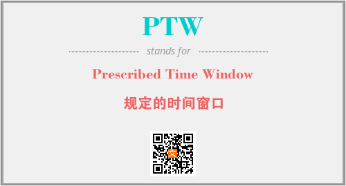 英文缩略词“PTW”经常作为“Prescribed Time Window”的英文缩写来使用,中文表示:“规定的时间窗口”。本文将详细介绍英文缩写词PTW所代表英文单词,其对应的中文拼音、详细解释以及在英语中的流行度。此外,还有关于缩略词PTW的分类、应用领域及相关应用示例等。