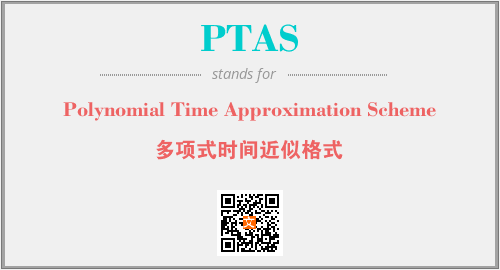 英文缩略词“PTAS”经常作为“Polynomial Time Approximation Scheme”的英文缩写来使用,中文表示:“多项式时间近似格式”。本文将详细介绍英文缩写词PTAS所代表英文单词,其对应的中文拼音、详细解释以及在英语中的流行度。此外,还有关于缩略词PTAS的分类、应用领域及相关应用示例等。