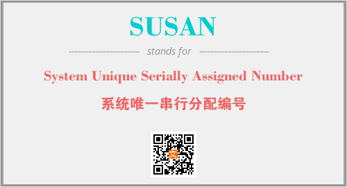 上述内容是“System Unique Serially Assigned Number”作为“SUSAN”的缩写,解释为“系统唯一串行分配编号”时的信息,以及英文缩略词SUSAN所代表的英文单词,其对应的中文拼音、详细解释以及在英文中的流行度和相关分类、应用领域及应用示例等。