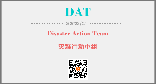 以上为Disaster Action Team英文缩略词DAT的中文解释,以及该英文缩写在英语的流行度、分类和应用领域方面的信息。