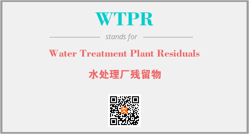 上述内容是“Water Treatment Plant Residuals”作为“WTPR”的缩写,解释为“水处理厂残留物”时的信息,以及英文缩略词WTPR所代表的英文单词,其对应的中文拼音、详细解释以及在英文中的流行度和相关分类、应用领域及应用示例等。