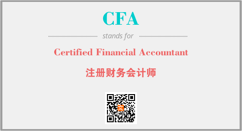 上述内容是“Certified Financial Accountant”作为“CFA”的缩写,解释为“注册财务会计师”时的信息,以及英文缩略词CFA所代表的英文单词,其对应的中文拼音、详细解释以及在英文中的流行度和相关分类、应用领域及应用示例等。