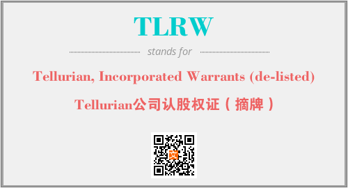 上述内容是“Tellurian, Incorporated Warrants (de-listed)”作为“TLRW”的缩写,解释为“Tellurian公司认股权证(摘牌)”时的信息,以及英文缩略词TLRW所代表的英文单词,其对应的中文拼音、详细解释以及在英文中的流行度和相关分类、应用领域及应用示例等。