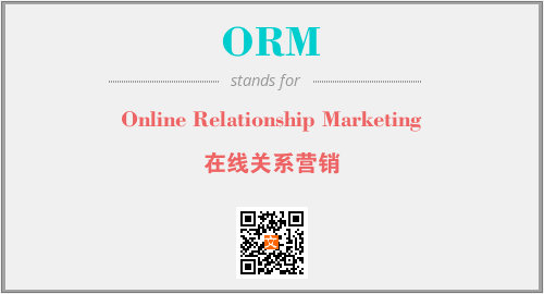 英文缩略词“ORM”经常作为“Online Relationship Marketing”的英文缩写来使用,中文表示:“在线关系营销”。本文将详细介绍英文缩写词ORM所代表英文单词,其对应的中文拼音、详细解释以及在英语中的流行度。此外,还有关于缩略词ORM的分类、应用领域及相关应用示例等。