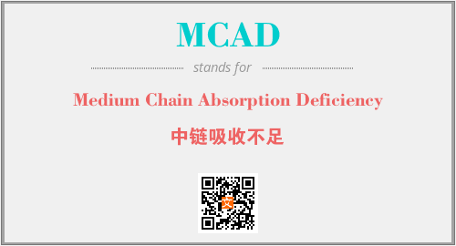 上述内容是“Medium Chain Absorption Deficiency”作为“MCAD”的缩写,解释为“中链吸收不足”时的信息,以及英文缩略词MCAD所代表的英文单词,其对应的中文拼音、详细解释以及在英文中的流行度和相关分类、应用领域及应用示例等。