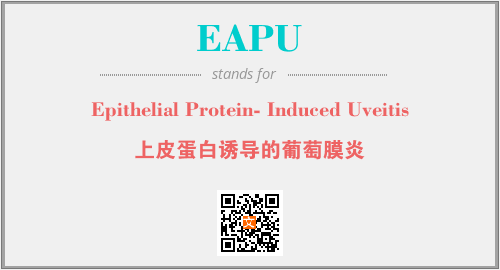 上述内容是“Epithelial Protein- Induced Uveitis”作为“EAPU”的缩写,解释为“上皮蛋白诱导的葡萄膜炎”时的信息,以及英文缩略词EAPU所代表的英文单词,其对应的中文拼音、详细解释以及在英文中的流行度和相关分类、应用领域及应用示例等。