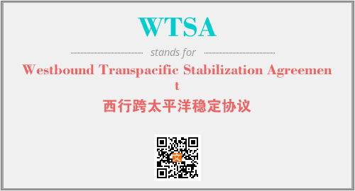 上述内容是“Westbound Transpacific Stabilization Agreement”作为“WTSA”的缩写,解释为“西行跨太平洋稳定协议”时的信息,以及英文缩略词WTSA所代表的英文单词,其对应的中文拼音、详细解释以及在英文中的流行度和相关分类、应用领域及应用示例等。