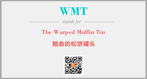 上述内容是“The Warped Muffin Tin”作为“WMT”的缩写,解释为“翘曲的松饼罐头”时的信息,以及英文缩略词WMT所代表的英文单词,其对应的中文拼音、详细解释以及在英文中的流行度和相关分类、应用领域及应用示例等。