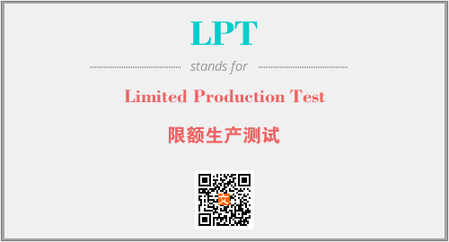 以上为Limited Production Test英文缩略词LPT的中文解释,以及该英文缩写在英语的流行度、分类和应用领域方面的信息。