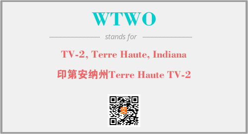 上述内容是“TV-2, Terre Haute, Indiana”作为“WTWO”的缩写,解释为“印第安纳州Terre Haute TV-2”时的信息,以及英文缩略词WTWO所代表的英文单词,其对应的中文拼音、详细解释以及在英文中的流行度和相关分类、应用领域及应用示例等。