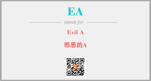 上述内容是“Evil A”作为“EA”的缩写,解释为“邪恶的A”时的信息,以及英文缩略词EA所代表的英文单词,其对应的中文拼音、详细解释以及在英文中的流行度和相关分类、应用领域及应用示例等。