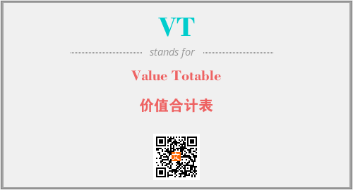 英文缩略词“VT”经常作为“Value Totable”的英文缩写来使用,中文表示:“价值合计表”。本文将详细介绍英文缩写词VT所代表英文单词,其对应的中文拼音、详细解释以及在英语中的流行度。此外,还有关于缩略词VT的分类、应用领域及相关应用示例等。