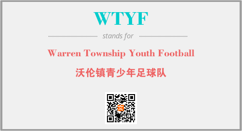 上述内容是“Warren Township Youth Football”作为“WTYF”的缩写,解释为“沃伦镇青少年足球队”时的信息,以及英文缩略词WTYF所代表的英文单词,其对应的中文拼音、详细解释以及在英文中的流行度和相关分类、应用领域及应用示例等。