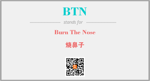 上述内容是“Burn The Nose”作为“BTN”的缩写,解释为“烧鼻子”时的信息,以及英文缩略词BTN所代表的英文单词,其对应的中文拼音、详细解释以及在英文中的流行度和相关分类、应用领域及应用示例等。
