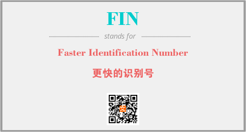 英文缩略词“FIN”经常作为“Faster Identification Number”的英文缩写来使用,中文表示:“更快的识别号”。本文将详细介绍英文缩写词FIN所代表英文单词,其对应的中文拼音、详细解释以及在英语中的流行度。此外,还有关于缩略词FIN的分类、应用领域及相关应用示例等。