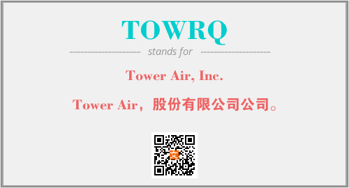 上述内容是“Tower Air, Inc.”作为“TOWRQ”的缩写,解释为“Tower Air,股份有限公司公司。”时的信息,以及英文缩略词TOWRQ所代表的英文单词,其对应的中文拼音、详细解释以及在英文中的流行度和相关分类、应用领域及应用示例等。