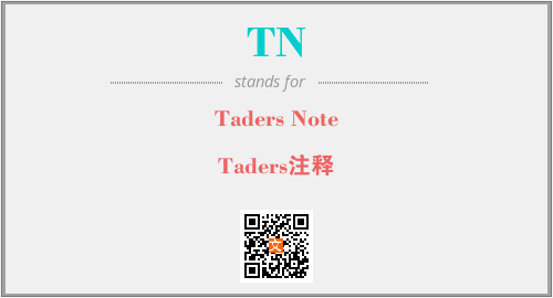 英文缩略词“TN”经常作为“Taders Note”的英文缩写来使用,中文表示:“Taders注释”。本文将详细介绍英文缩写词TN所代表英文单词,其对应的中文拼音、详细解释以及在英语中的流行度。此外,还有关于缩略词TN的分类、应用领域及相关应用示例等。