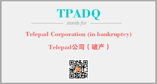 上述内容是“Telepad Corporation (in bankruptcy)”作为“TPADQ”的缩写,解释为“Telepad公司(破产)”时的信息,以及英文缩略词TPADQ所代表的英文单词,其对应的中文拼音、详细解释以及在英文中的流行度和相关分类、应用领域及应用示例等。