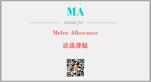 英文缩略词“MA”经常作为“Melee Allowance”的英文缩写来使用,中文表示:“近战津贴”。本文将详细介绍英文缩写词MA所代表英文单词,其对应的中文拼音、详细解释以及在英语中的流行度。此外,还有关于缩略词MA的分类、应用领域及相关应用示例等。