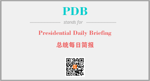 英文缩略词“PDB”经常作为“Presidential Daily Briefing”的英文缩写来使用,中文表示:“总统每日简报”。本文将详细介绍英文缩写词PDB所代表英文单词,其对应的中文拼音、详细解释以及在英语中的流行度。此外,还有关于缩略词PDB的分类、应用领域及相关应用示例等。