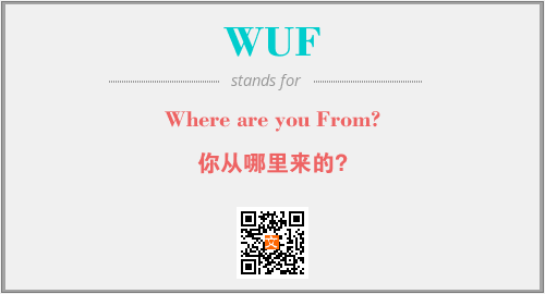 上述内容是“Where are you From?”作为“WUF”的缩写,解释为“你从哪里来的?”时的信息,以及英文缩略词WUF所代表的英文单词,其对应的中文拼音、详细解释以及在英文中的流行度和相关分类、应用领域及应用示例等。