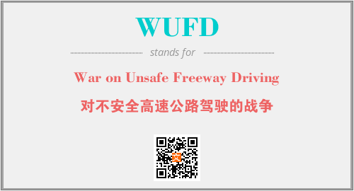 上述内容是“War on Unsafe Freeway Driving”作为“WUFD”的缩写,解释为“对不安全高速公路驾驶的战争”时的信息,以及英文缩略词WUFD所代表的英文单词,其对应的中文拼音、详细解释以及在英文中的流行度和相关分类、应用领域及应用示例等。