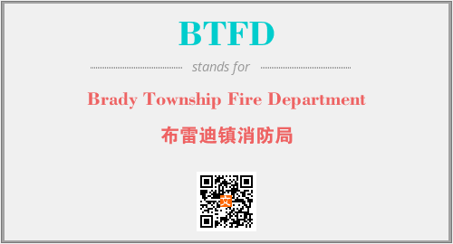 上述内容是“Brady Township Fire Department”作为“BTFD”的缩写,解释为“布雷迪镇消防局”时的信息,以及英文缩略词BTFD所代表的英文单词,其对应的中文拼音、详细解释以及在英文中的流行度和相关分类、应用领域及应用示例等。