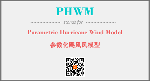 上述内容是“Parametric Hurricane Wind Model”作为“PHWM”的缩写,解释为“参数化飓风风模型”时的信息,以及英文缩略词PHWM所代表的英文单词,其对应的中文拼音、详细解释以及在英文中的流行度和相关分类、应用领域及应用示例等。