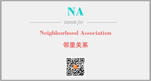 英文缩略词“NA”经常作为“Neighborhood Association”的英文缩写来使用,中文表示:“邻里关系”。本文将详细介绍英文缩写词NA所代表英文单词,其对应的中文拼音、详细解释以及在英语中的流行度。此外,还有关于缩略词NA的分类、应用领域及相关应用示例等。