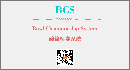 以上为Bowl Championship System英文缩略词BCS的中文解释,以及该英文缩写在英语的流行度、分类和应用领域方面的信息。