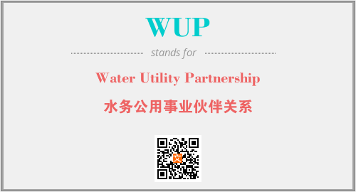 英文缩略词“WUP”经常作为“Water Utility Partnership”的英文缩写来使用,中文表示:“水务公用事业伙伴关系”。本文将详细介绍英文缩写词WUP所代表英文单词,其对应的中文拼音、详细解释以及在英语中的流行度。此外,还有关于缩略词WUP的分类、应用领域及相关应用示例等。