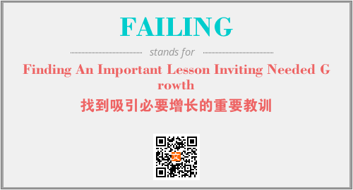 上述内容是“Finding An Important Lesson Inviting Needed Growth”作为“FAILING”的缩写,解释为“找到吸引必要增长的重要教训”时的信息,以及英文缩略词FAILING所代表的英文单词,其对应的中文拼音、详细解释以及在英文中的流行度和相关分类、应用领域及应用示例等。