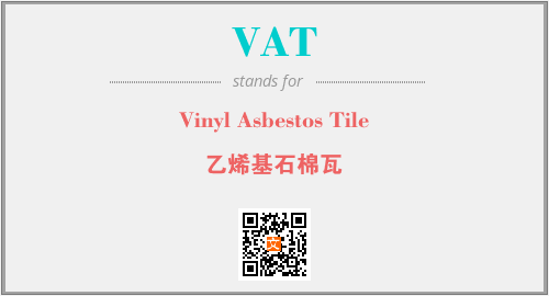 以上为Vinyl Asbestos Tile英文缩略词VAT的中文解释,以及该英文缩写在英语的流行度、分类和应用领域方面的信息。