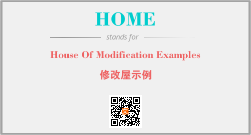 英文缩略词“HOME”经常作为“House Of Modification Examples”的英文缩写来使用,中文表示:“修改屋示例”。本文将详细介绍英文缩写词HOME所代表英文单词,其对应的中文拼音、详细解释以及在英语中的流行度。此外,还有关于缩略词HOME的分类、应用领域及相关应用示例等。