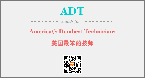 英文缩略词“ADT”经常作为“America\'s Dumbest Technicians”的英文缩写来使用,中文表示:“美国最笨的技师”。本文将详细介绍英文缩写词ADT所代表英文单词,其对应的中文拼音、详细解释以及在英语中的流行度。此外,还有关于缩略词ADT的分类、应用领域及相关应用示例等。