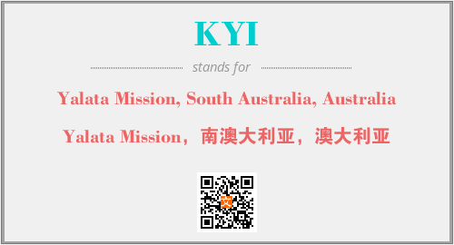 上述内容是“Yalata Mission, South Australia, Australia”作为“KYI”的缩写,解释为“Yalata Mission,南澳大利亚,澳大利亚”时的信息,以及英文缩略词KYI所代表的英文单词,其对应的中文拼音、详细解释以及在英文中的流行度和相关分类、应用领域及应用示例等。