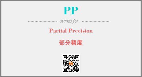 上述内容是“Partial Precision”作为“PP”的缩写,解释为“部分精度”时的信息,以及英文缩略词PP所代表的英文单词,其对应的中文拼音、详细解释以及在英文中的流行度和相关分类、应用领域及应用示例等。