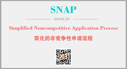 以上为Simplified Noncompetitive Application Process英文缩略词SNAP的中文解释,以及该英文缩写在英语的流行度、分类和应用领域方面的信息。