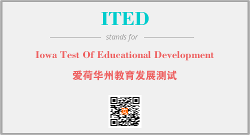 英文缩略词“ITED”经常作为“Iowa Test Of Educational Development”的英文缩写来使用,中文表示:“爱荷华州教育发展测试”。本文将详细介绍英文缩写词ITED所代表英文单词,其对应的中文拼音、详细解释以及在英语中的流行度。此外,还有关于缩略词ITED的分类、应用领域及相关应用示例等。