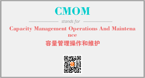英文缩略词“CMOM”经常作为“Capacity Management Operations And Maintenance”的英文缩写来使用,中文表示:“容量管理操作和维护”。本文将详细介绍英文缩写词CMOM所代表英文单词,其对应的中文拼音、详细解释以及在英语中的流行度。此外,还有关于缩略词CMOM的分类、应用领域及相关应用示例等。