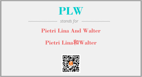 英文缩略词“PLW”经常作为“Pietri Lina And Walter”的英文缩写来使用,中文表示:“Pietri Lina和Walter”。本文将详细介绍英文缩写词PLW所代表英文单词,其对应的中文拼音、详细解释以及在英语中的流行度。此外,还有关于缩略词PLW的分类、应用领域及相关应用示例等。